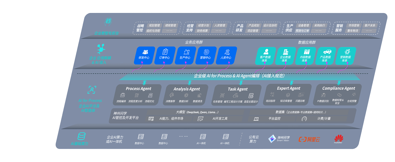 纽约国际问学智车解决方案是一套基于AI技术的汽车行业智能化系统,,覆盖从底层算力到顶层AI应用的全栈方案。。。。方案由算力层、、、模型层和应用层组成:算力层,,,,方案支持多种一体机配置,,,,具备云端灵活部署、、多云适配以及动态优化计算资源的能力;模型层,,,,纽约国际问学平台版提供了企业级AI应用一站式构建与管理平台,,,,支持基于后训练强化技术的汽车企业专属模型的训练、、、评测和运营;应用层,,,纽约国际问学DeepSeek版提供包括超级员工、、、智能招采、、智能营销、、智能客服、、、、AI for BI等一系列解决方案,,,,可助力汽车行业实现数字化转型,,,让管理更智能、、响应更敏捷。。