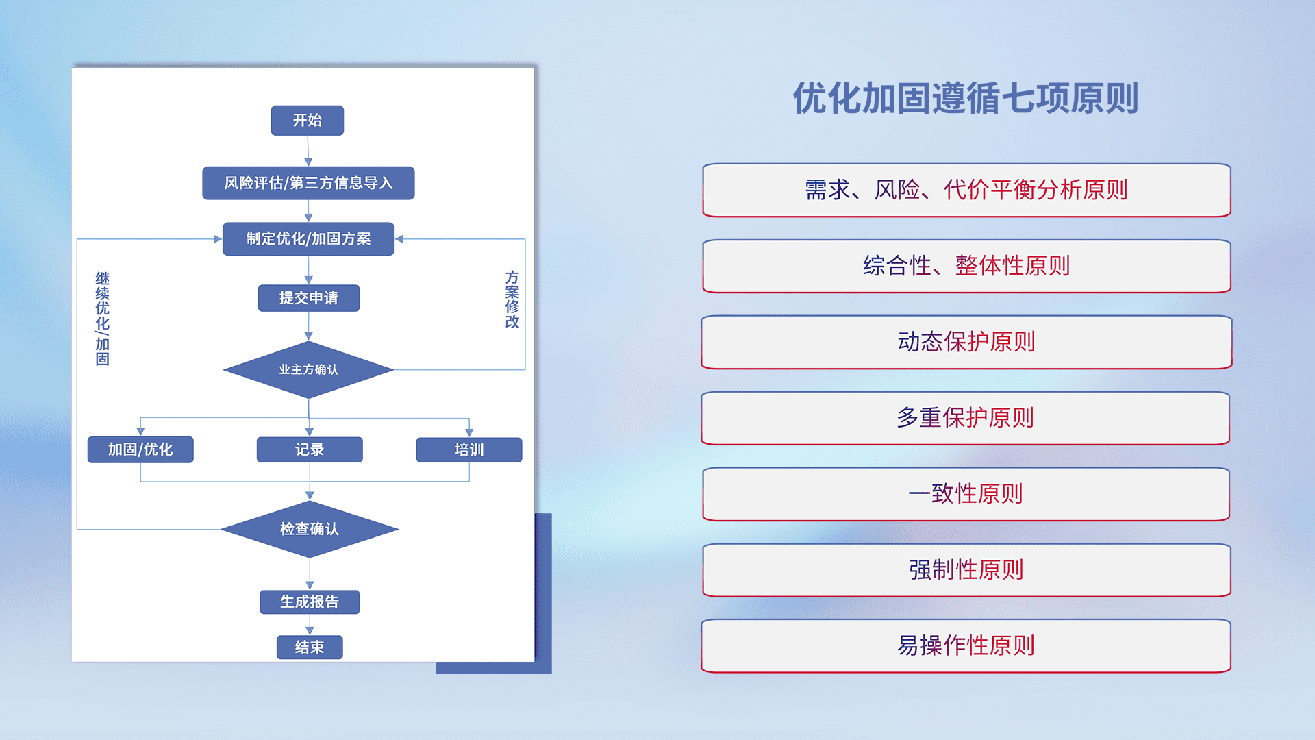 最大程度利用现有资产,,对评估发现的问题进行封堵与整改,,防止漏洞被利用,,,提升整体网络安全性,,,为客户带来高标准的优化加固服务。。